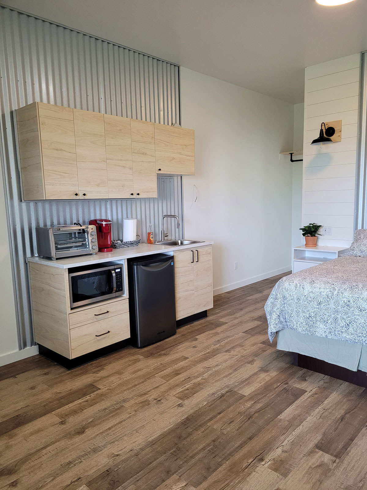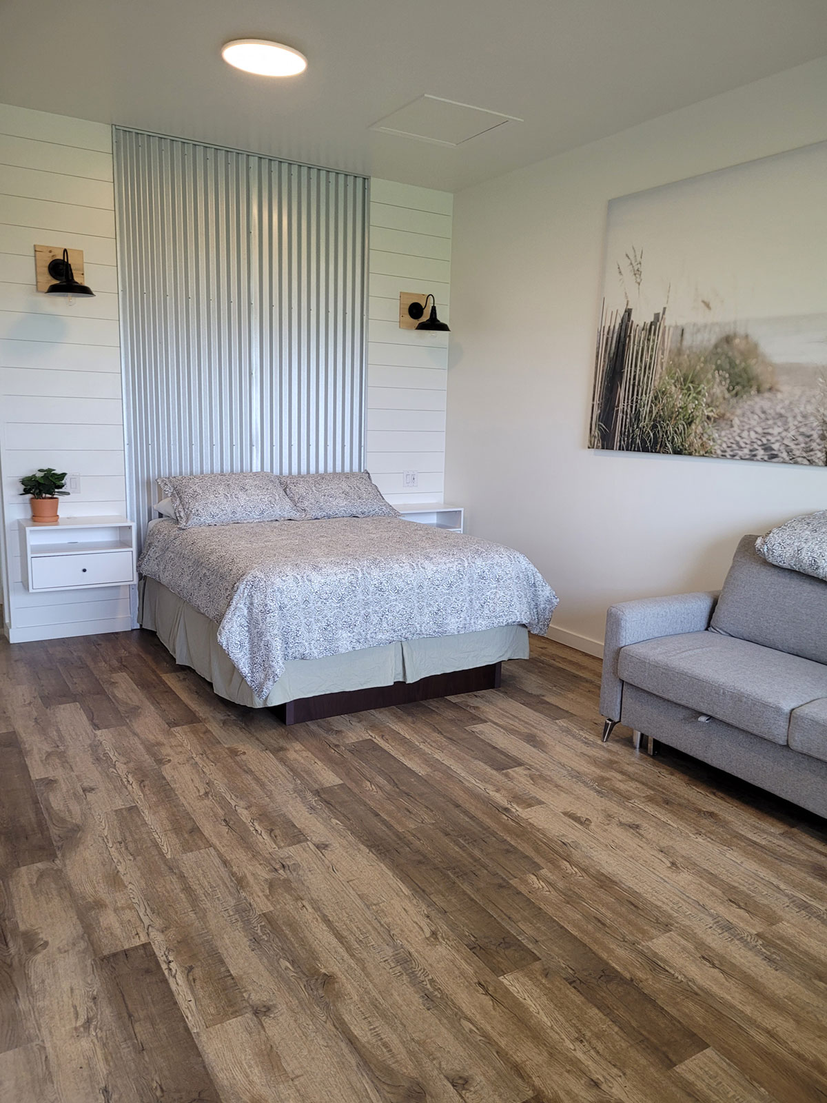 Come out to stay in our new beachfront rooms. With queen-size bed and sofa-bed, you can comfortably accommodate up-to 4 people. The kitchen area includes a bar fridge, small appliances, microwave, and basic cookware/dishes. The bathroom includes a full bath with shower/tub. A BBQ with propane is supplied on the front deck, and two rooms are wheelchair accessible.